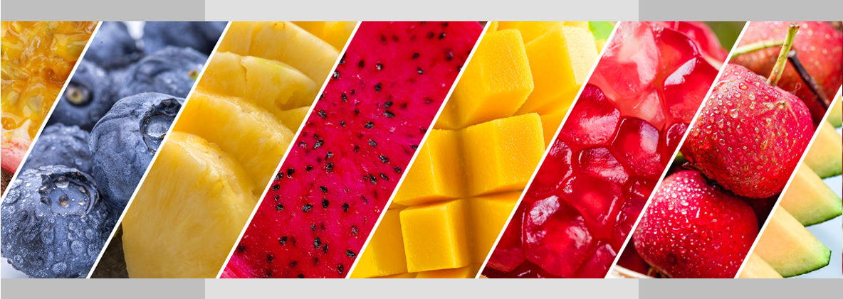 火龍果、芒果、菠蘿、哈密瓜、石榴、雪梨、藍莓、無花果、百香果、山楂、桑椹果等。